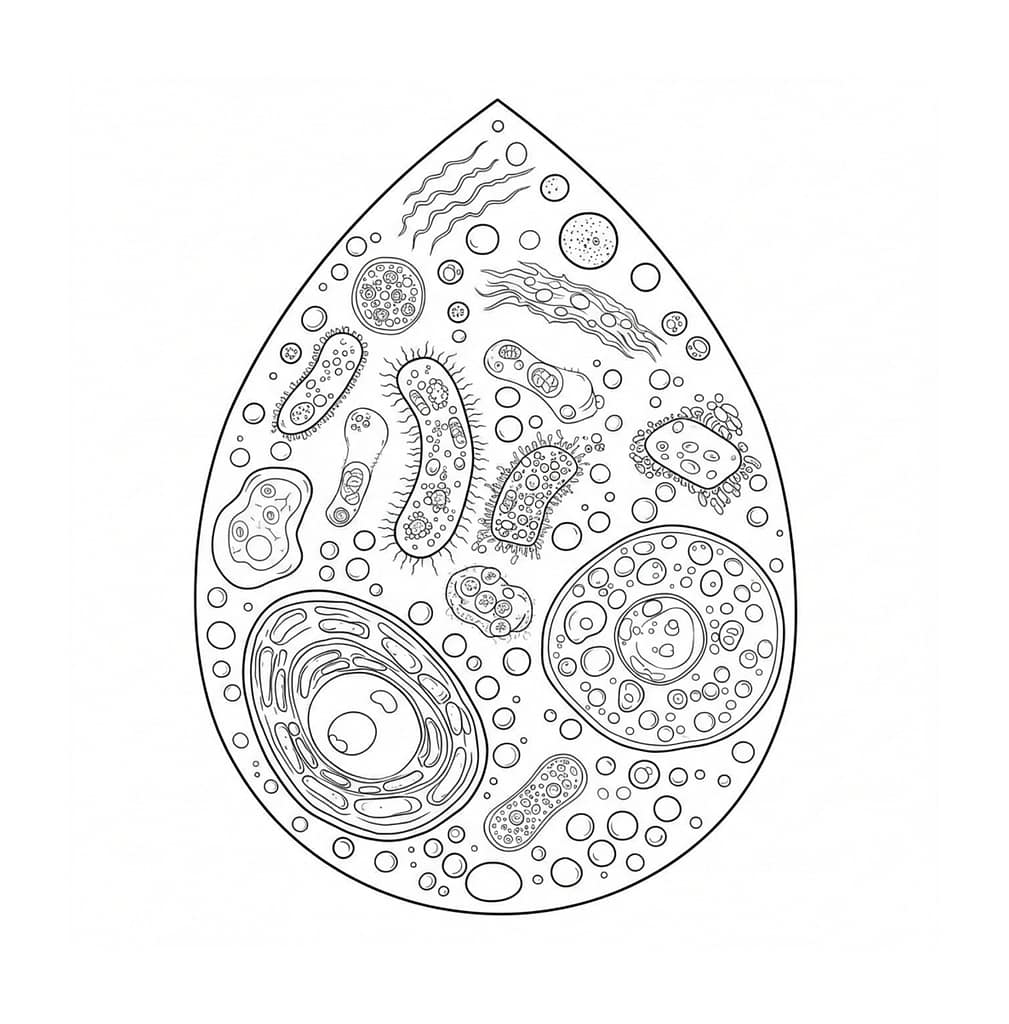 Dive into a mesmerizing world where science meets art! This 50-page intricately designed coloring book invites you to explore the hidden universe within a single waterdrop—from swirling DNA strands to bustling microscopic cell-cities. Perfect for teens and adults, each black-and-white illustration blends biology with imaginative detail, offering: