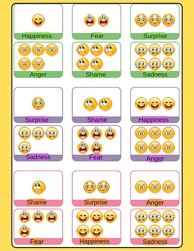 - Children can be talked about which emotion appears most frequently, which emotion appears least frequently, which emotions appear equally, or which emotion appears the number of times.